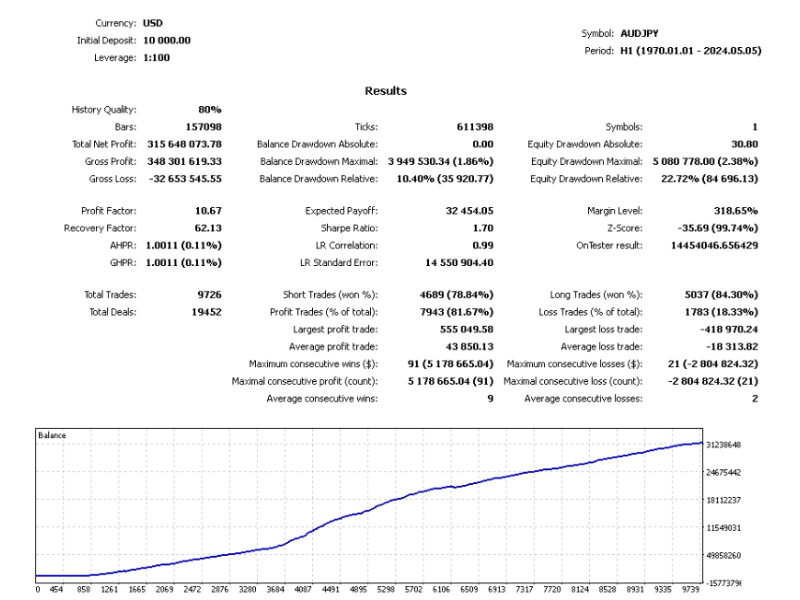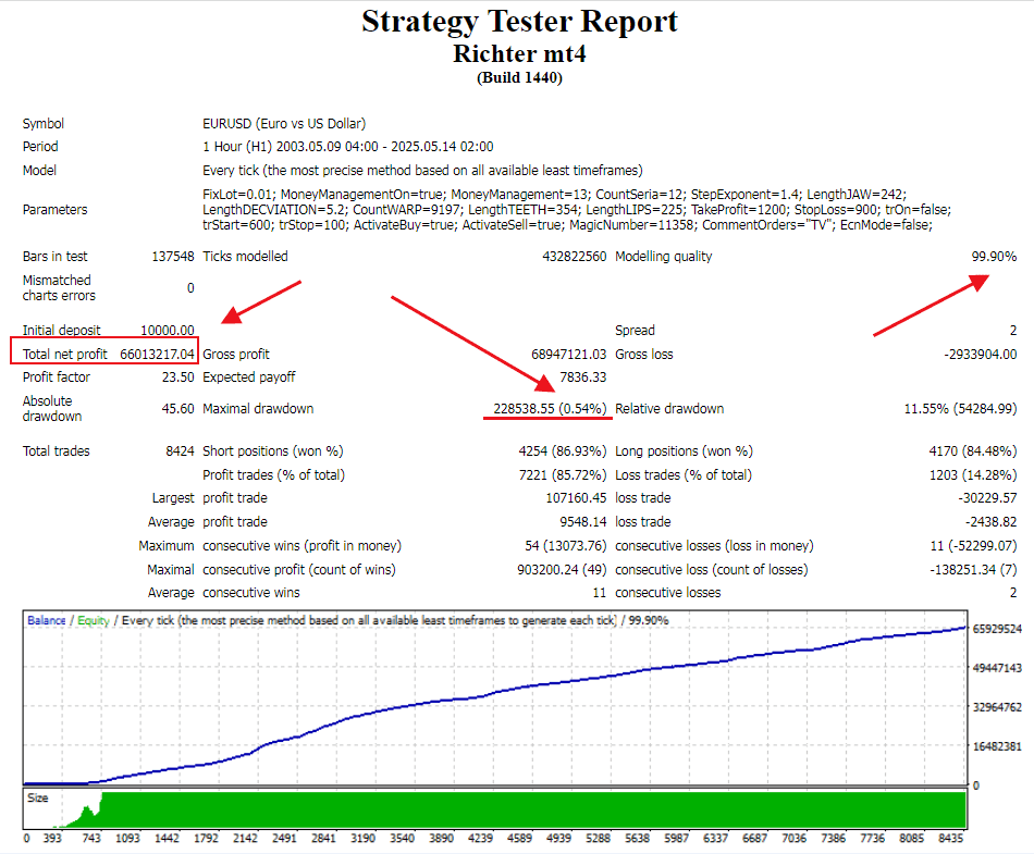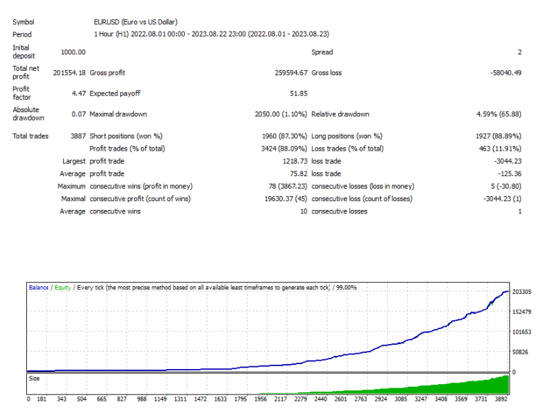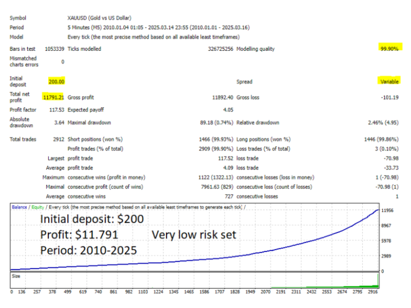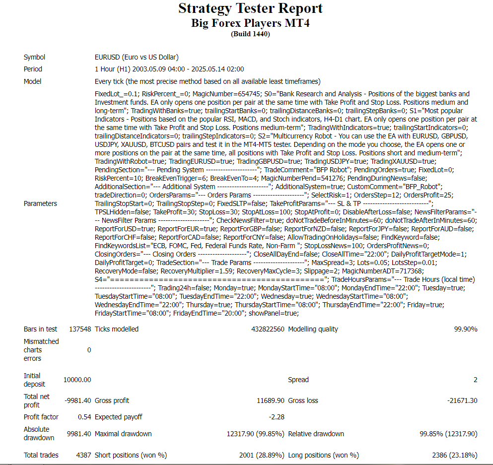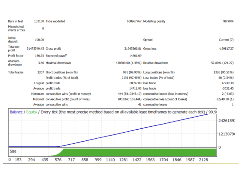 To sum up, our backtesting results significantly differ from the data provided by the EA Vendor.