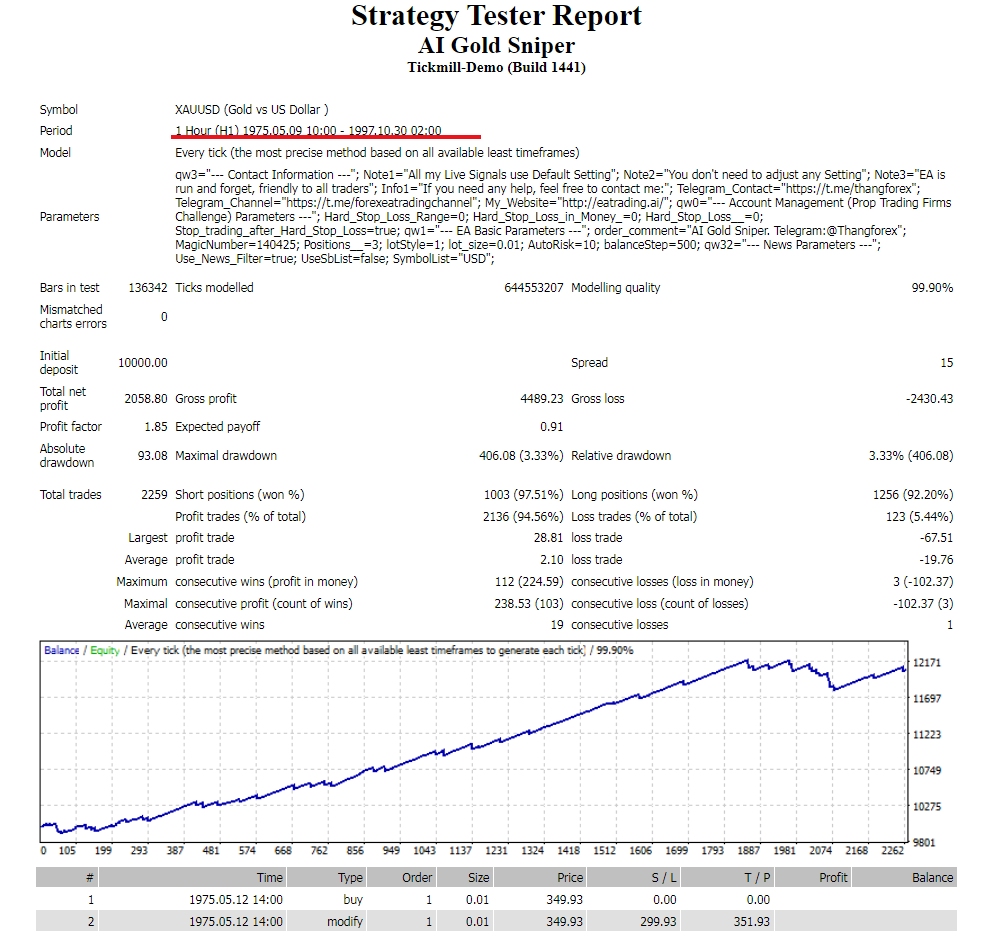 1. By comparing the results of the “Go Back 28-year” Tickdata Backtest, the EA Vendor removed many losing trades, not only achieving a 100% winning rate for short trades but also making the backtested equity curve appear perfect.